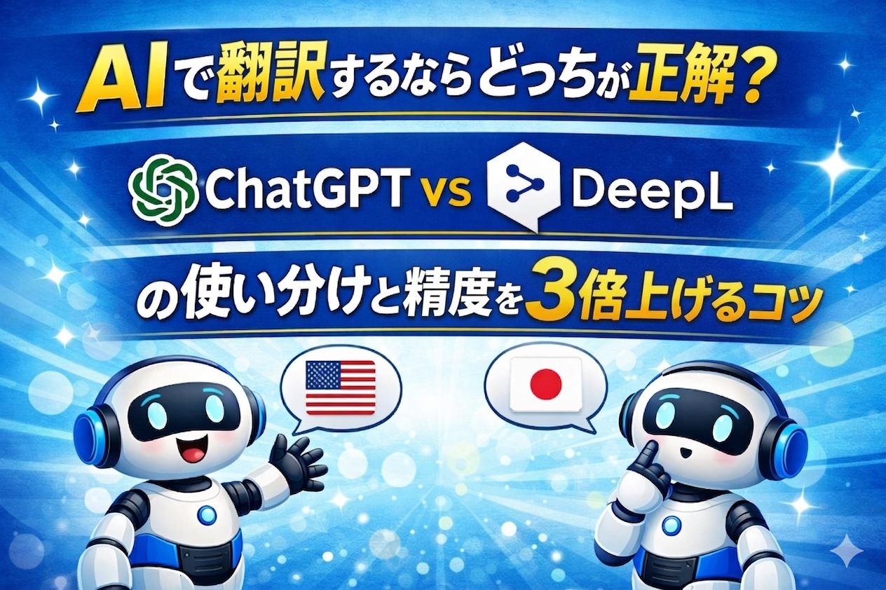 AI翻訳ツールが普及した今、ChatGPTとDeepLはどちらも多くのビジネスパーソンに使われています。でも「なんとなく使っている」だけでは、翻訳の精度に大きな差が出てしまいます。