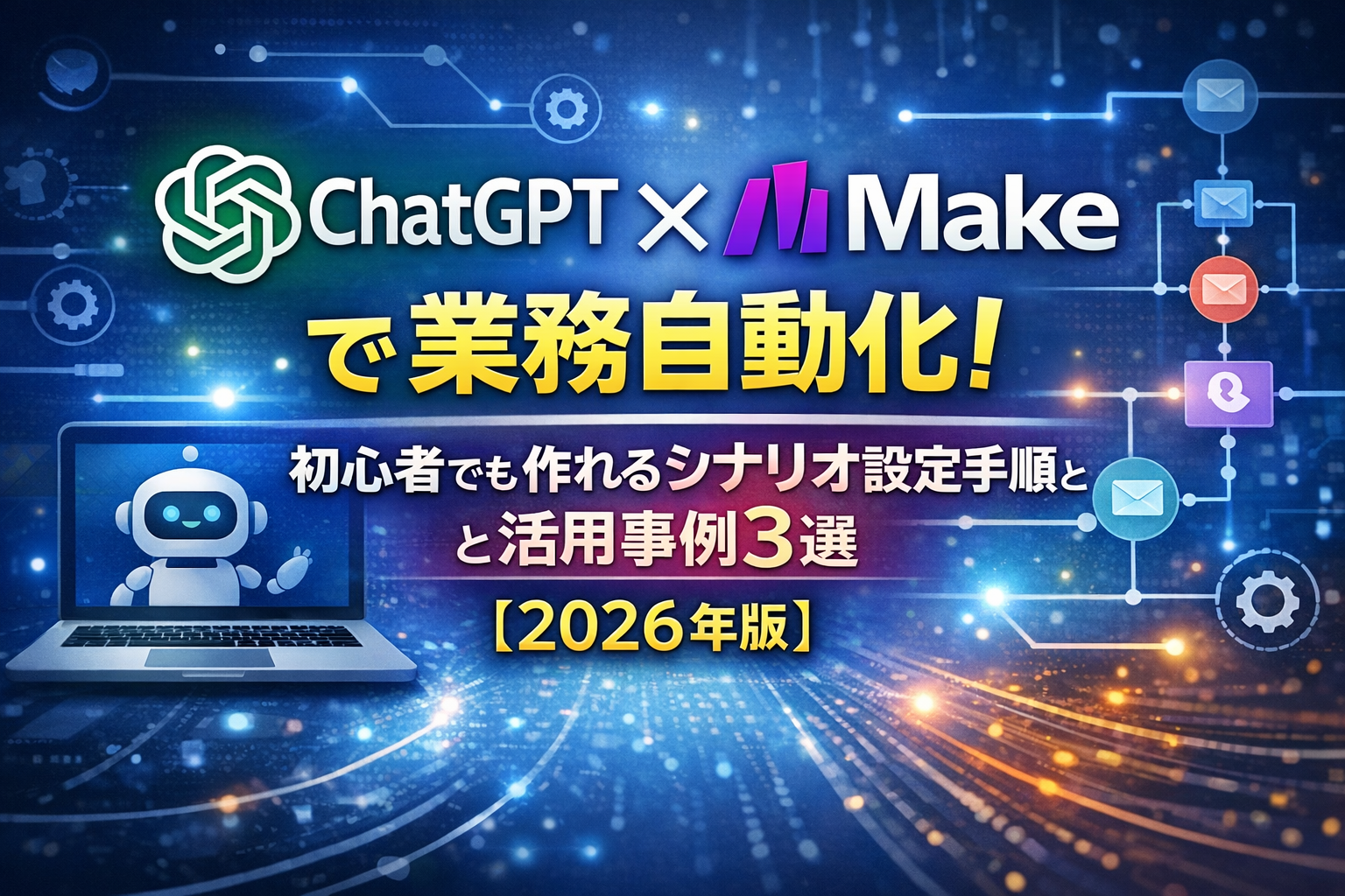 そんな悩みを抱えていませんか? ChatGPT(チャットジーピーティー)とMake(メイク)を組み合わせると、メール処理・議事録作成・レポート生成などの業務を、プログラミング知識ゼロで自動化できます。 この記事では、ChatGPTとMakeの基本的な連携方法から、今日から使える活用事例3選、料金・設定手順まで初心者の方にもわかるように丁寧に解説します。 「難しそう」と感じている方こそ、ぜひ最後まで読んでみてください。