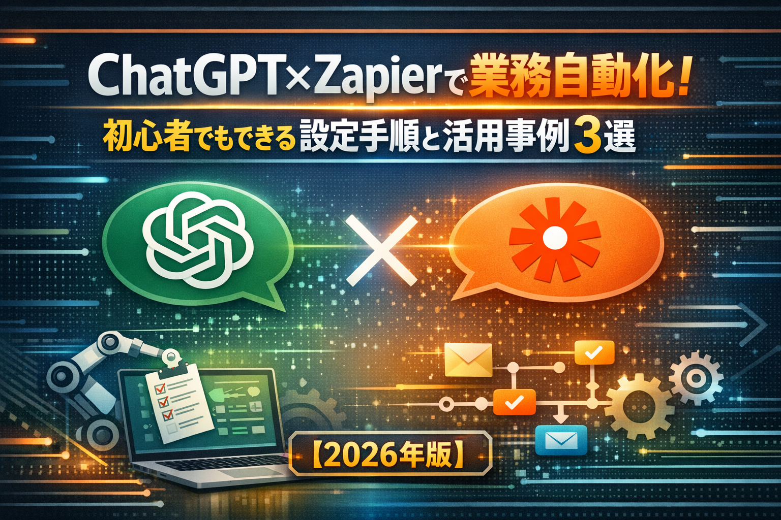 そんな悩みを抱えていませんか? ChatGPT(チャットジーピーティー)とZapier(ザピアー)を組み合わせると、メール処理・議事録作成・タスク登録などの日常業務を、プログラミング知識ゼロで自動化できます。 この記事では、ChatGPTとZapierの基本的な連携方法から、今日からすぐ使える活用事例3選、料金・始め方まで初心者の方にもわかるように丁寧に解説します。 「難しそう」と思っている方こそ、ぜひ最後まで読んでみてください。