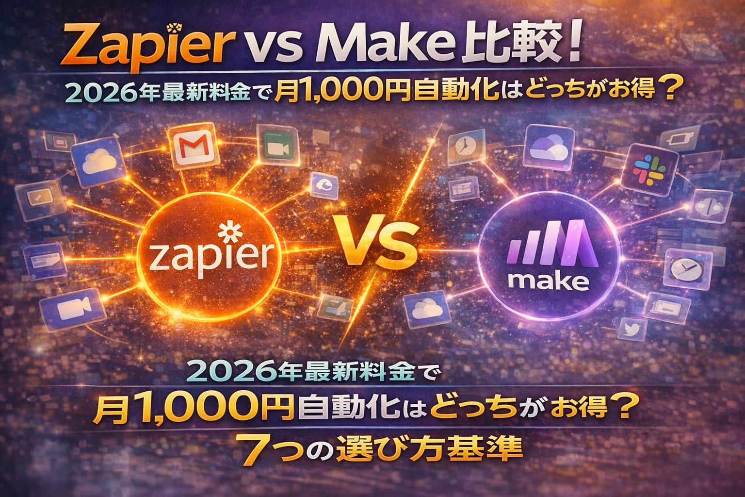 Zapier vs Make比較!2026年最新料金で月1,000円自動化はどっちがお得?7つの選び方基準